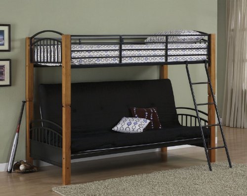 - Twin Size Futon Bunk Bed in Country Pine and Matte Black Finish